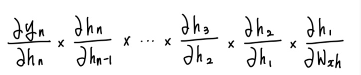 그렇다면 현재(t)를 기준으로 과거의 값(1,2,...t-1)들이 현재의 결과에 미치는 정도는 얼마나 될까? 이를 확인하고 최적의 결과를 내기위해 모델은 Back Propagation을 수행하게 된다. Back Propagation이란 '오차 역전파'라고도 하며 동일 입력층에 대해 원하는 값이 출력되도록 개개의 가중치를 조절하는 방법으로 사용된다. 쉽게 말해서 각각의 입력값(\( x_1, x_2,...,x_t \))이 출력값(\( y_t \))에 알맞는, 원하는 영향을 주기위해 어떤 가중치(여기서 초점을 맞추려는 가중치는 \(W_{xh}\).)가 적당한지 확인하는 것이다. 하지만 Vanila RNN의 단점은 여기서 발견할 수 있다.