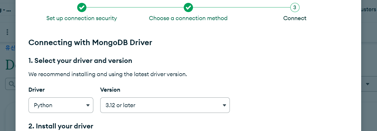 (6)번에서 링크에 비밀번호가 포함이 되서 비밀번호 만들 때부터 잘해야하는... 물론 변경할 수 있습니당. (1)번 화면 좌측 아래에 SECURITY > Database Access 에 들어가면 user name에 대한 Action의 Edit에 들어가면 됩니다.